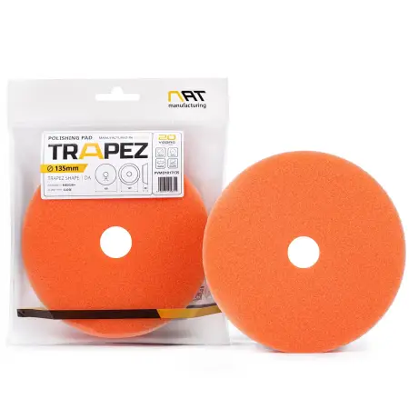 Pad polerski NAT Trapez DA w nowoczesnym wydaniu, dedykowany maszynom Dual Action (DA). Żółta, średnia piana typu CLOSED-cell idealnie nadaje się do skutecznej jednoetapowej lub wieloetapowej korekty lakieru. Zoptymalizowany, niski profil i precyzyjnie dobrany rozmiar rzepa gwarantują wygodę pracy i minimalizują efekt uginania się piany.