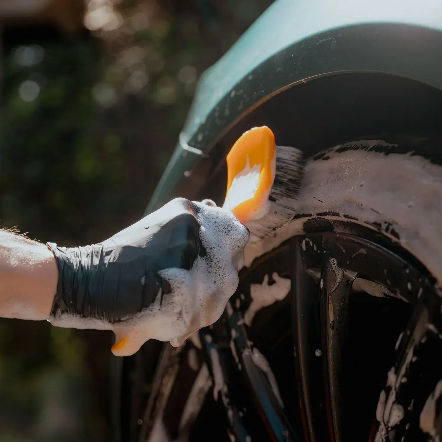 WORK STUFF WILLY WILLY – to praktyczna szczotka z głównym przeznaczeniem do mycia opon, ale sprawdzi się też w miejscach trudno dostępnych i pomijanych przy myciu np nadkoli, dość niewielki kształt pozwoli uporać się nawet z brudem przy niższym aucie. Willy Willy posiada odpowiednio twarde włosie syntetyczne, lekko pofalowane i bardzo elastyczne, co zapewnia maksymalną moc szorowania opon o różnych bieżnikach nawet tych o skomplikowanych wzorach. DziĘeki odpowiedniemu profilowaniu idealnie dopasuje sie do kształtu opon, a ergonomiczna konstrukcja i poręczny uchwyt sprawi, że łatwo ułoży się w twojej dłoni, zapewniając komfort i efektywność użytkowania. Niewątpliwie największym atrybutem tej szczotki jest to, że domywa największy brud i usuwa pozostałości po starych dresiingach do opon. Pamiętaj aby po skończonej pracy opłukać szczotkę i pozostawić ją do wyschnięcia, możesz ją powiesić na haczyku, ułatwi ci to otwór na końcu rękojeści.