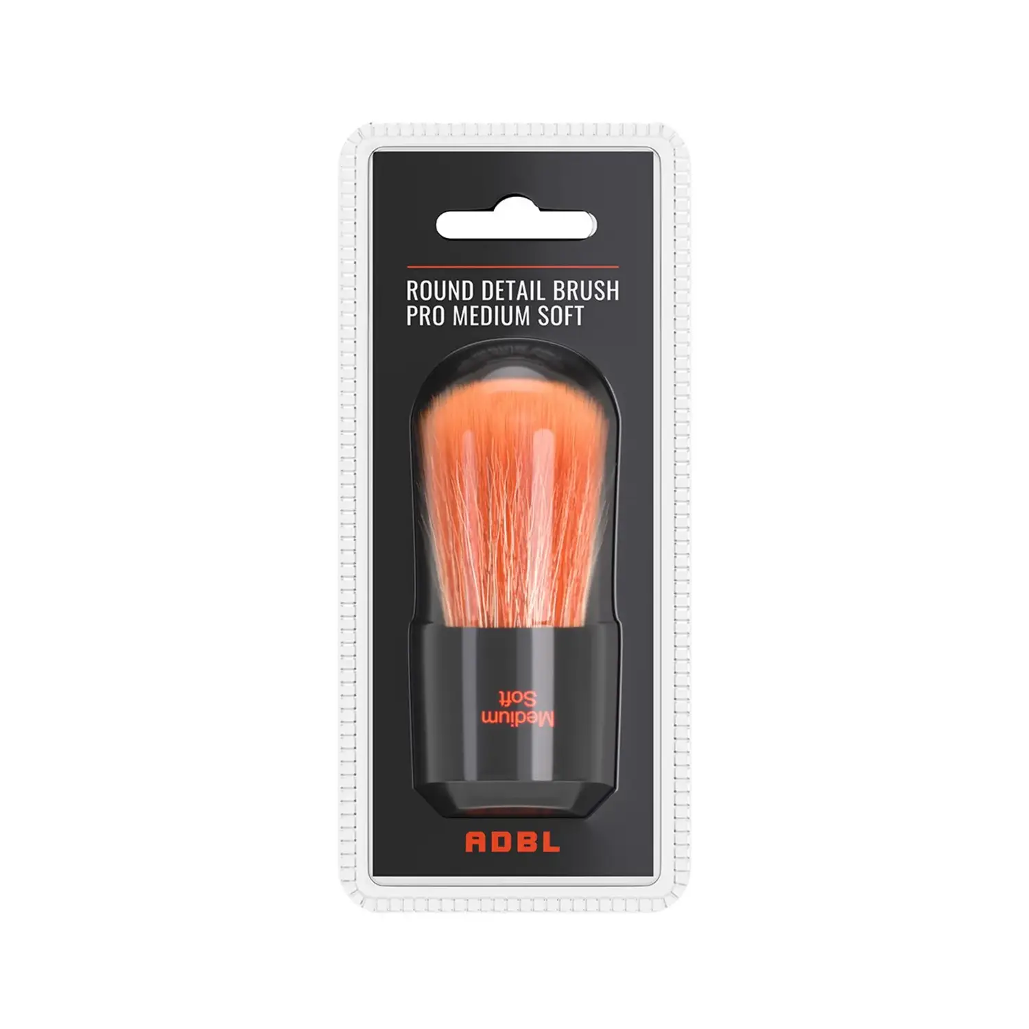 Wymienna końcówka pędzla Round Detailing Brush Pro, charakteryzująca się średnio miękkim włosiem o długości 5 cm. Wypustki na obwodzie zapobiegają spadaniu z pochyłej powierzchni. Kompatybilna z odkręcaną rączką ADBL Round Detailing Brush Pro dostępną do kupienia w zestawie lub oddzielnie.