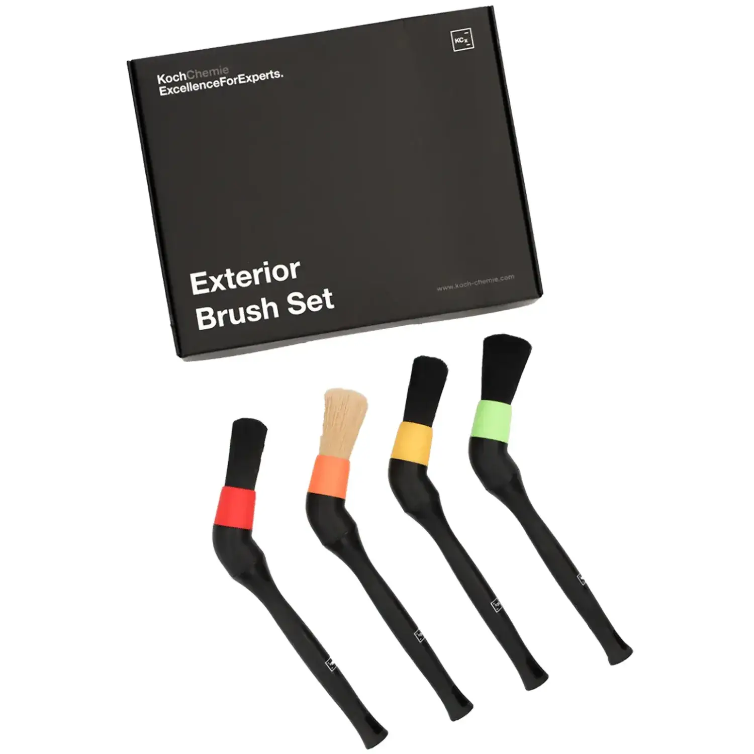 Skoordynowany zestaw pędzli nadaje się do przygotowania zewnętrznej powierzchni pojazdu. Zestaw składa się z czterech pędzli z kątownikiem, który można odkręcić, aby dotrzeć nawet do trudno dostępnych miejsc. Różne rodzaje włosia ułatwiają czyszczenie różnych obszarów użytkowania na zewnątrz. Kolorowe oznaczenia czterech pędzli ułatwiają ich rozróżnienie w zależności od obszaru zastosowania. Kwasoodporny czerwony idealnie nadaje się do czyszczenia felg. Pomarańczowy to odpowiedni wybór do zgrubnej obróbki elementów z tworzyw sztucznych, takich jak czyszczenie osłony chłodnicy lub progów. Powierzchnie szklane i gumowe, takie jak lusterka boczne czy uszczelki, można skutecznie czyścić pędzlem żółtym. Przy szczególnie precyzyjnej pracy na wrażliwych powierzchniach lakierowanych, takich jak chrom lub powierzchnie połyskliwe zielony pędzel pracuje z niezbędną ostrożnością dzięki wyjątkowo delikatnemu włosiu. Czyszczenie zewnętrzne jest łatwe, zwłaszcza w połączeniu z naszymi produktami.