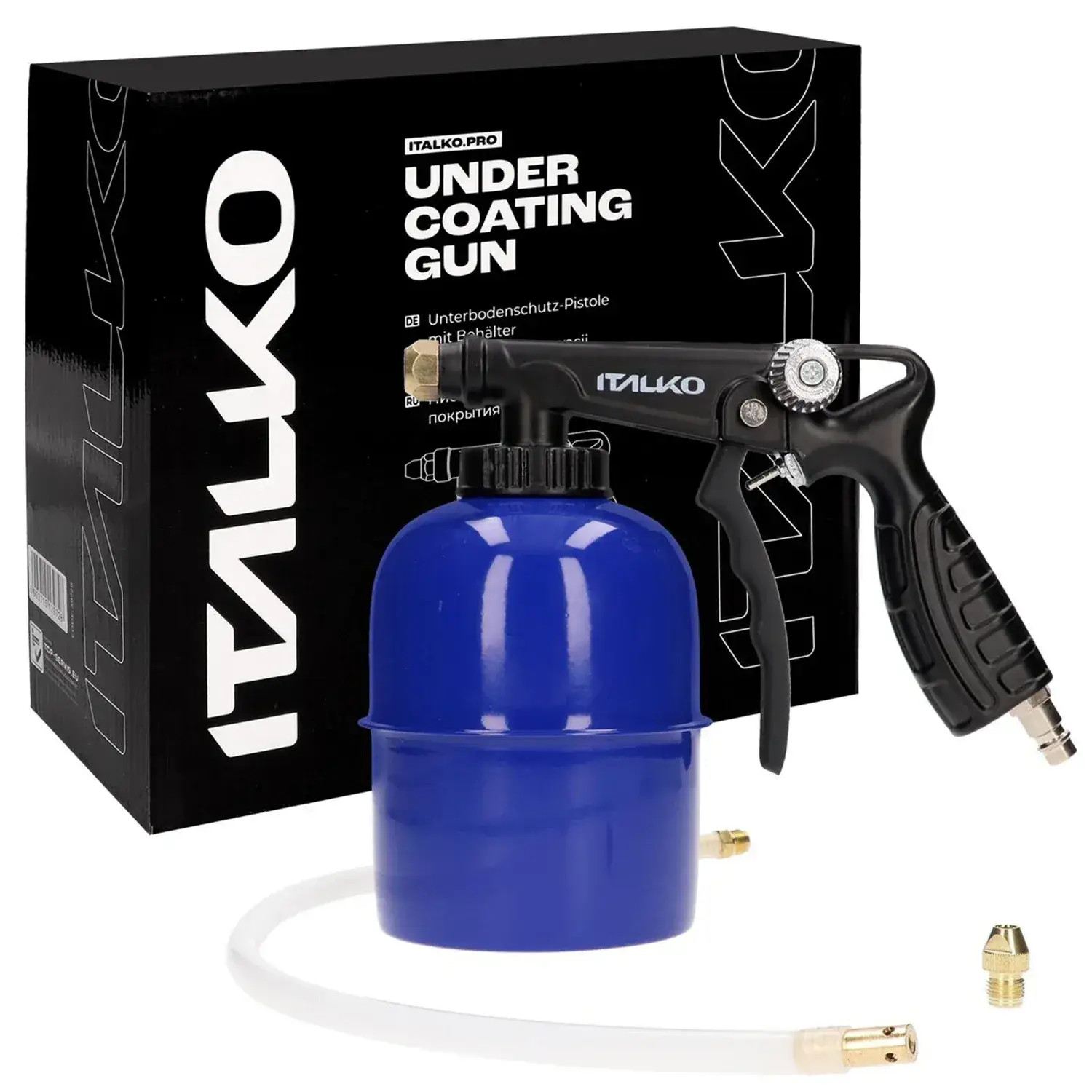 Pistolet służy do przeprowadzenia prac renowacyjnych lub naprawczych, wytwarza jednolity i precyzyjny natrysk. Umożliwia nakładanie gotowych środków antykorozyjnych, itp. – baranek – w puszkach 1 L z gwintem. Dodana sonda umożliwia konserwowanie profili zamkniętych i miejsc trudno dostępnych. Doskonale wyważony, poręczny, lekki o solidnej konstrukcji. Regulowana szerokość natrysku i przepływ farby.