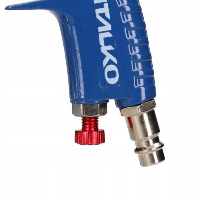Pistolet posiada regulacje- ciśnienia powietrza, ilości lakieru oraz kształtu strumienia lakieru.