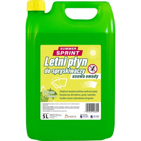 Nowy, gotowy do użycia letni płyn SUMMER SPRINT posiada świetne właściwości czyszczące. Szybko i sprawnie usuwa z szyb i reflektorów typowe zabrudzenia drogowe, jak pył, błoto, oleiste czy lepkie osady. Świetnie radzi sobie również z pozostałościami po owadach, poprawiając komfort i bezpieczeństwo jazdy. Płyn SUMMER SPRINT jest w pełni bezpieczny dla plastików, gumy czy elementów lakierowanych. Płyn dostępny jest w dużym, ekonomicznym opakowaniu 5L.