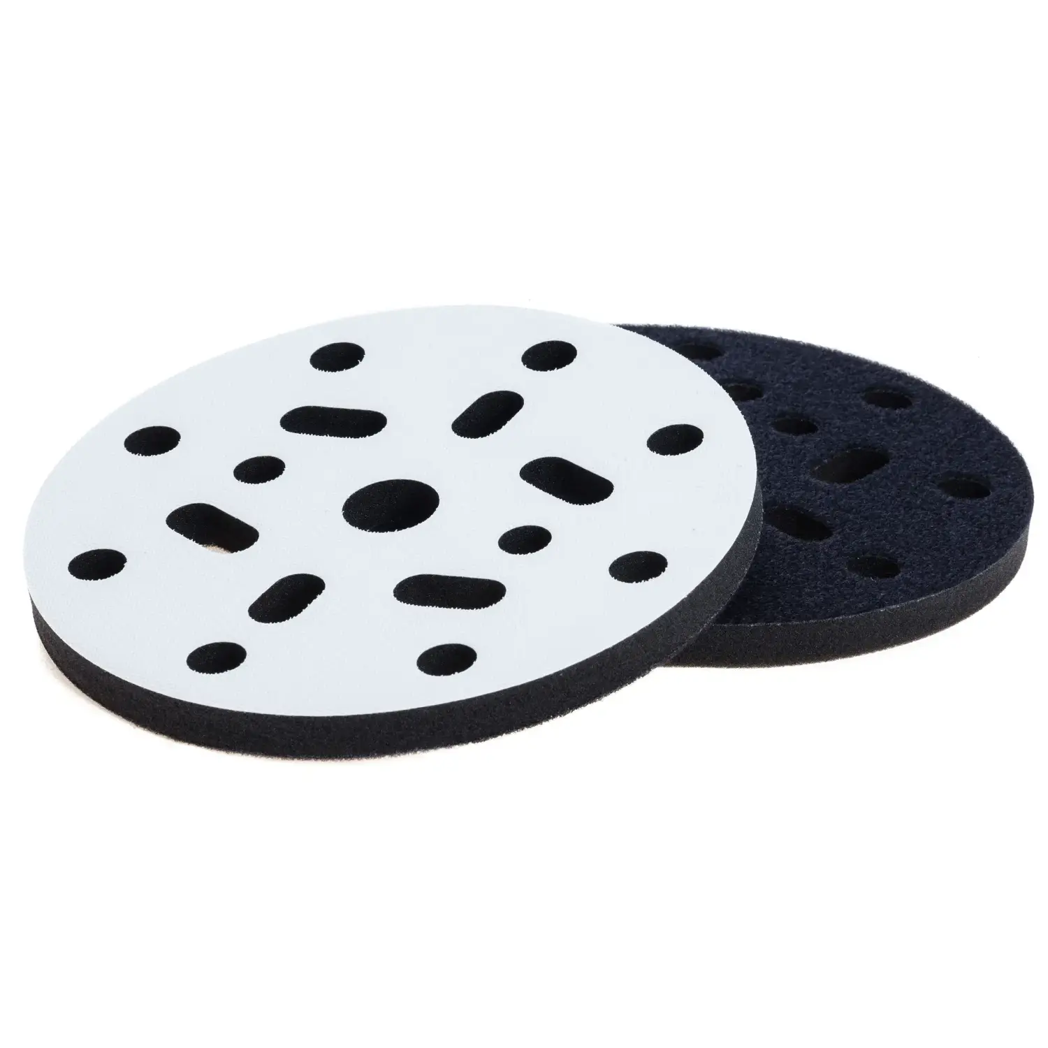 Dysk przejściowy oprócz prac wstępnych może służyć do wykańczania delikatnych łuków i profili. Przekładka dystansowa wykonana z komponentów do prac wstępnych. Podobnie jak w przypadku padów, zastosowano tu europejskie certyfikowane komponenty. Dzięki czemu produkt jest odporny na kurz, wodę i wysokie temperatury. We wszystkich przekładkach zastosowaliśmy system otworów jak w powszechnie używanych papierach ściernych. Dzięki czemu przekładki są kompatybilne z okrągłymi krążkami papierów ściernych mocowanych na rzep. Pianki w przekładkach występują w czterech twardościach, aby swobodnie dobrać optymalne zawieszenie do wykonywanych prac i oczekiwanych rezultatów.