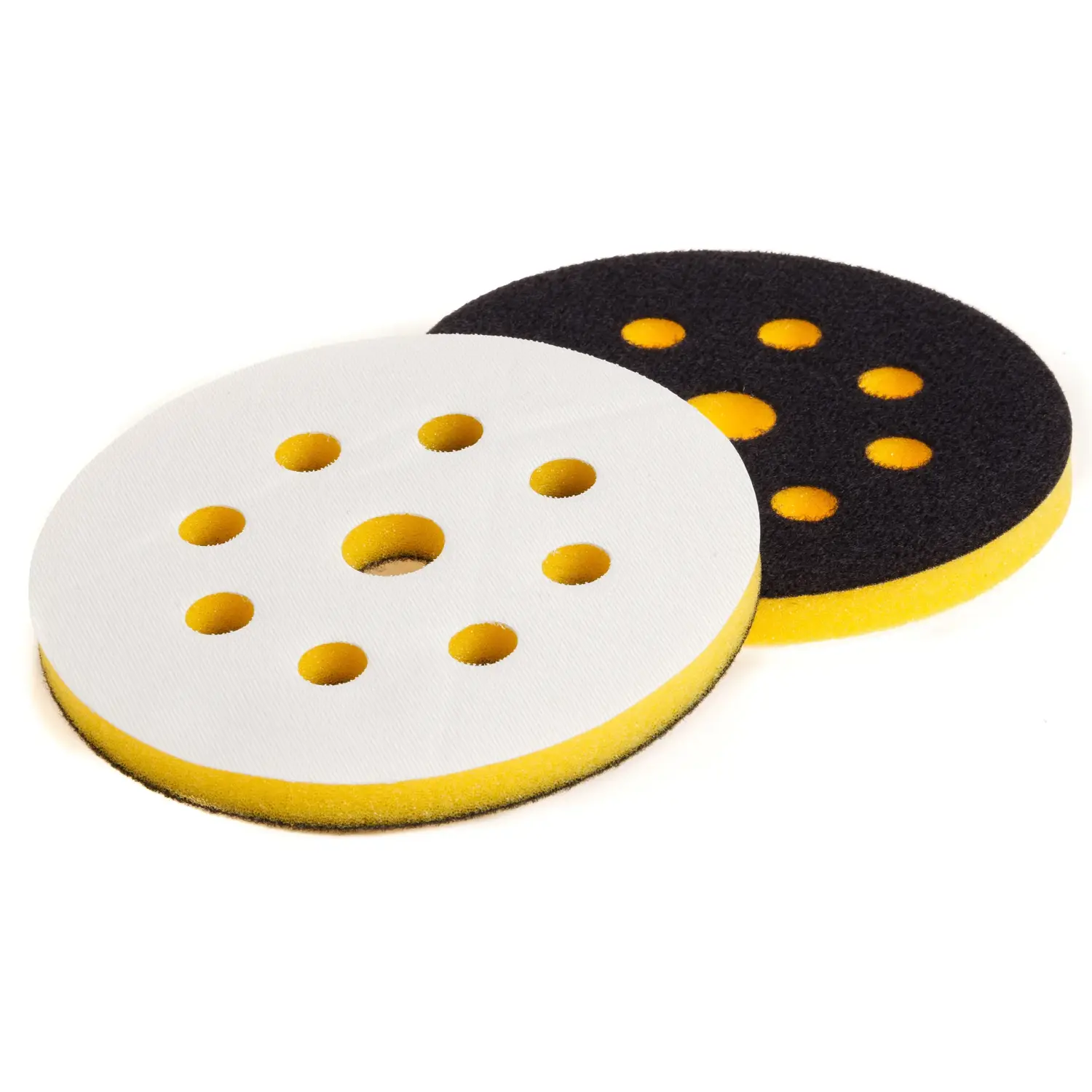 Dysk przejściowy oprócz prac wstępnych może służyć do wykańczania delikatnych łuków i profili. Przekładka dystansowa wykonana z komponentów do prac wstępnych. Podobnie jak w przypadku padów, zastosowano tu europejskie certyfikowane komponenty. Dzięki czemu produkt jest odporny na kurz, wodę i wysokie temperatury. We wszystkich przekładkach zastosowaliśmy system otworów jak w powszechnie używanych papierach ściernych. Dzięki czemu przekładki są kompatybilne z okrągłymi krążkami papierów ściernych mocowanych na rzep. Pianki w przekładkach występują w czterech twardościach, aby swobodnie dobrać optymalne zawieszenie do wykonywanych prac i oczekiwanych rezultatów.