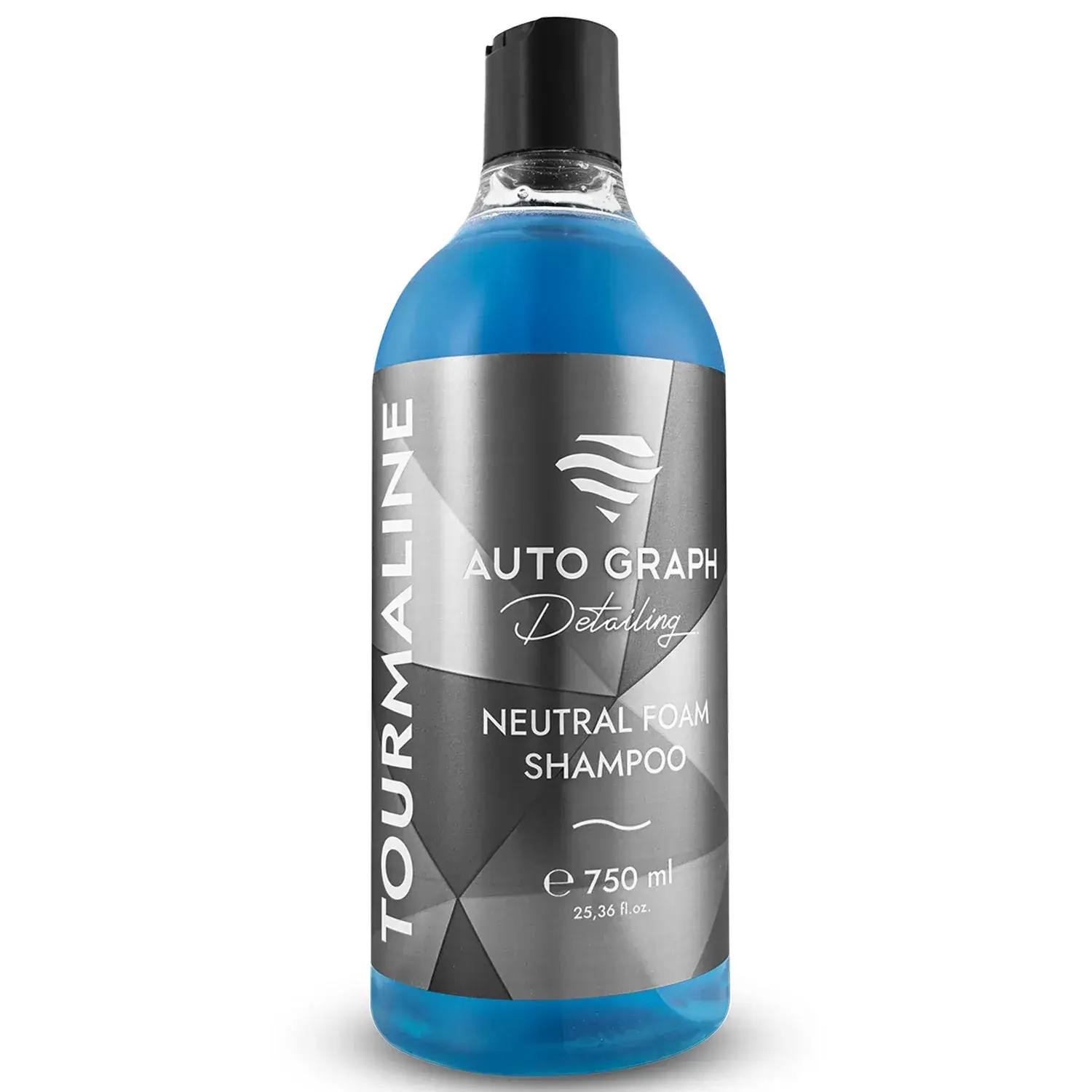 Auto Graph Tourmaline – to silnie skoncentrowany szampon o neutralnym pH do mycia i pianowania samochodów. Z łatwością usuwa brud, odtłuszcza i nabłyszcza lakier. Czyści delikatnie, ale zarazem efektywnie. Bardzo łatwy do wypłukania. Zalecane dawkowanie 25-50 ml / 10 L wody. W roztworze 2% może być stosowany jako piana. Z Tourmaline nie ma nudy – paleta kolorów i zapachów do wyboru!