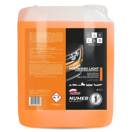 CARLAB POLIWASH LIGHT to nowoczesny szampon typu rinseless wash z polimerami ochronnymi i zaawansowanymi surfaktantami. Nie wymaga spłukiwania, nie tworzy piany i minimalizuje ryzyko mikrozarysowań, zapewniając perfekcyjny połysk i świeży zapach. Ekonomiczne, bezpieczne mycie karoserii, szyb, wnętrza, tapicerki i felg. Kompatybilny z CARLAB POLISEAL.