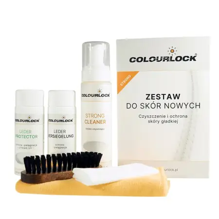Środek czyszczący do skór gładkich Colourlock Soft Clean/Strong Cleaner skutecznie usuwa wszelkiego rodzaju plamy i zabrudzenia z powierzchni skóry, niweluje nieprzyjemne zapachy (np. dym papierosowy, ludzki pot), nie uszkadza jej powierzchni i nie powoduje powstawania przebarwień. Dzięki zastosowaniu aplikatora piany ograniczono do niezbędnego minimum użycie wody, której długotrwałe skutki są niebezpieczne dla kondycji skóry. Środek ten znajduje szerokie zastosowanie przy czyszczeniu wszelkiego rodzaju skór gładkich w samochodach i meblach skórzanych, walizkach, torebkach oraz galanterii. Do czyszczenia niewielkich zabrudzeń lub przy regularnym czyszczeniu zalecamy użycie delikatniejszego środka czyszczącego Soft Clean.