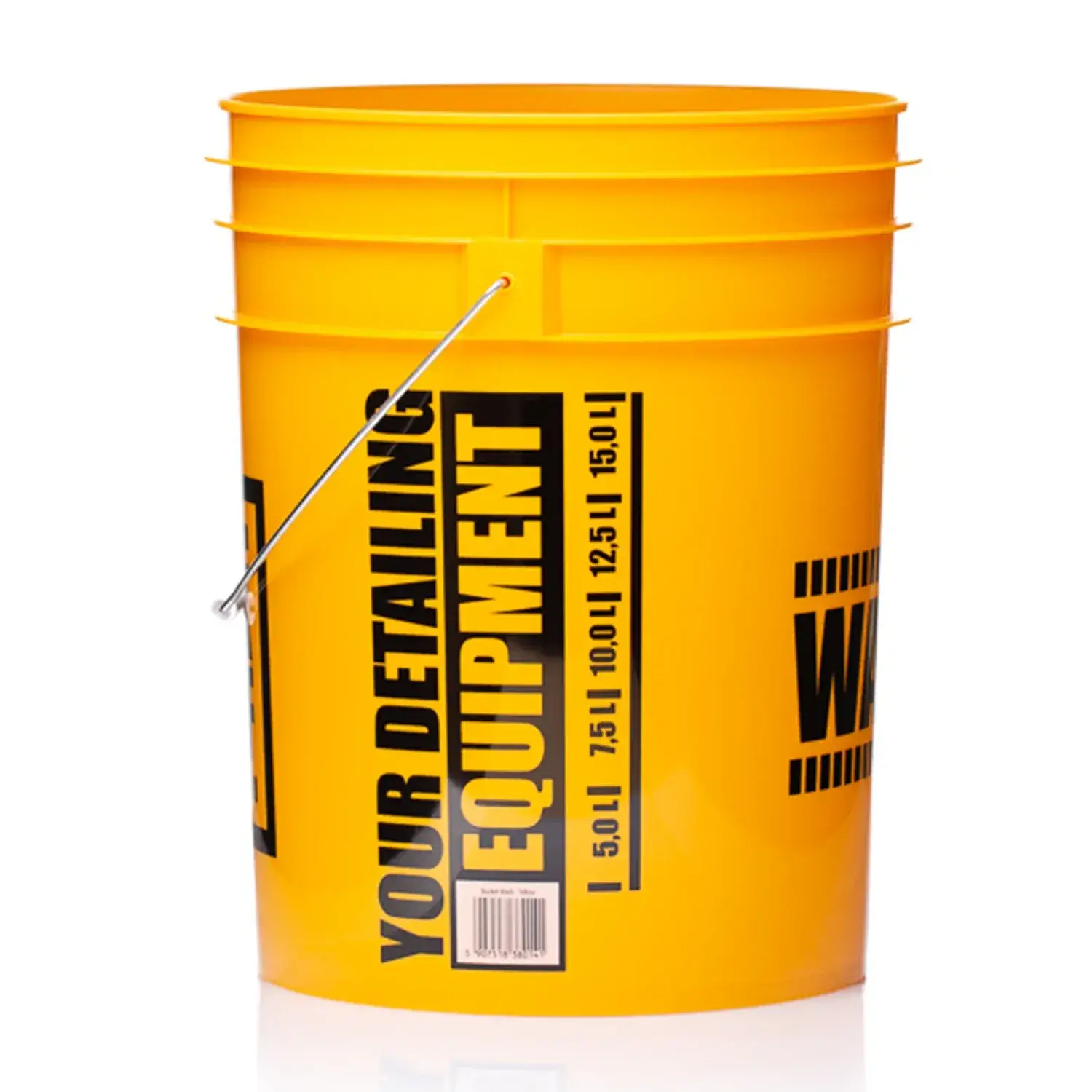 Profesjonalne wiadro do mycia auta. Wykonane z mocnego materiału HDPE. Na ścianie wiadra znajduje się przydatna miarka do odmierzania ilości wlewanej wody. Maksymalna pojemność wiadra wynosi 20L. Dodatkowo wyposażone w metalową rączkę ułatwiającą przenoszenie. Całość oznakowana słowem "WASH" sugerującym przeznaczenie produktu. Zawiera separator brudu w zestawie.
