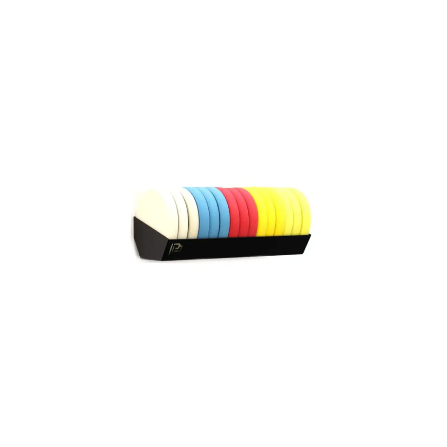 Wygodna i funkcjonalna półka do przechowywania padów polerskich różnych wielkości. Specjalnie zaprojektowana rynienka pozwala na wygodne wkładanie i wyjmowanie padów. Półka pomieści pady o średnicy od 83mm do 165mm. Elementy montażowe umieszczone w górnej i dolnej części podajnika gwarantują stabilność podczas użytkowania podajnika. Podajnik pomieści ok 14 padów polerskich.