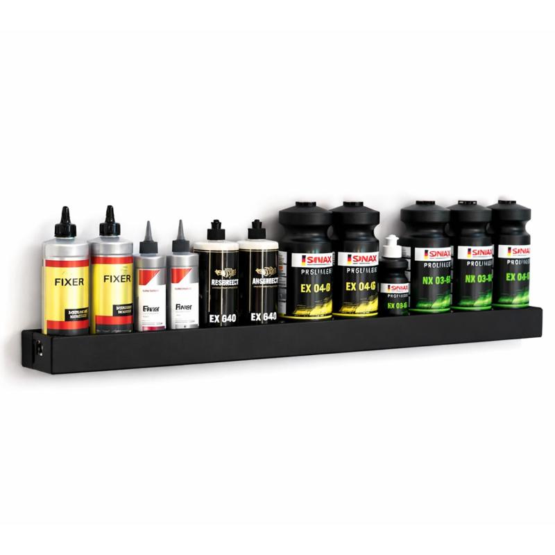 Wysokiej jakości korytka do przechowywania i sortowania akcesoriów detailingowych. Głębokość półki wynosi 86 mm, co umożliwia przechowywanie nawet dużych wymiarów akcesoriów, takich jak pasty polerskie. Wytrzymała stal i proszkowe wykończenie gwarantują doskonały wygląd i trwałość materiału.