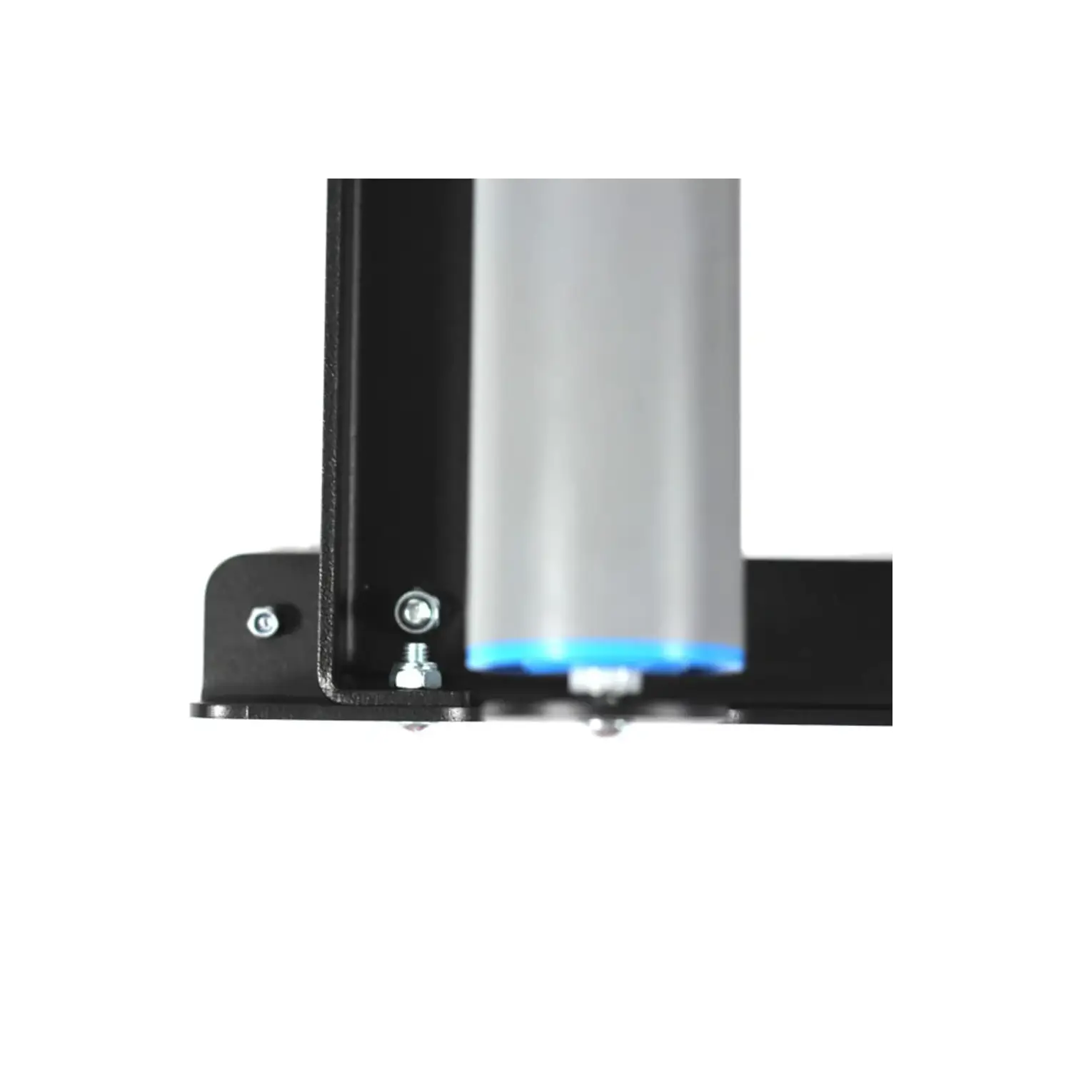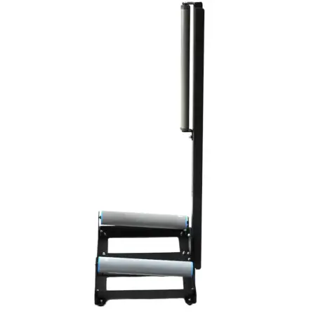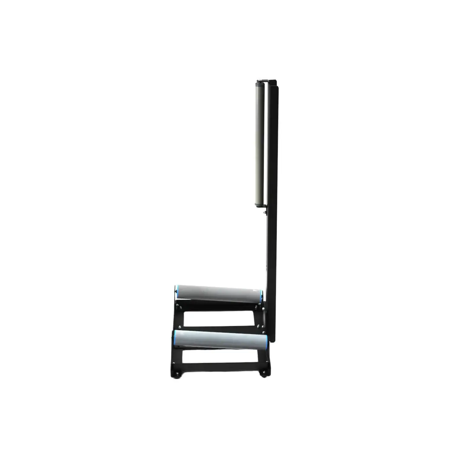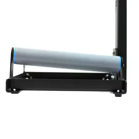 Stojak wykonany jest z 3mm wysokiej jakości, wytrzymałej oraz ocynkowanej stali, finalnie pokrytej proszkowym wykończeniem. Dolne rolki o długości 300 mm oraz górna o długości 400 mm (łączna długość pałąka 900 mm) dopasują się do felg w rozmiarze od 14” do 22”. Wysokiej jakości gumowe nóżki utrzymają stojak w jednej pozycji podczas całej pracy.