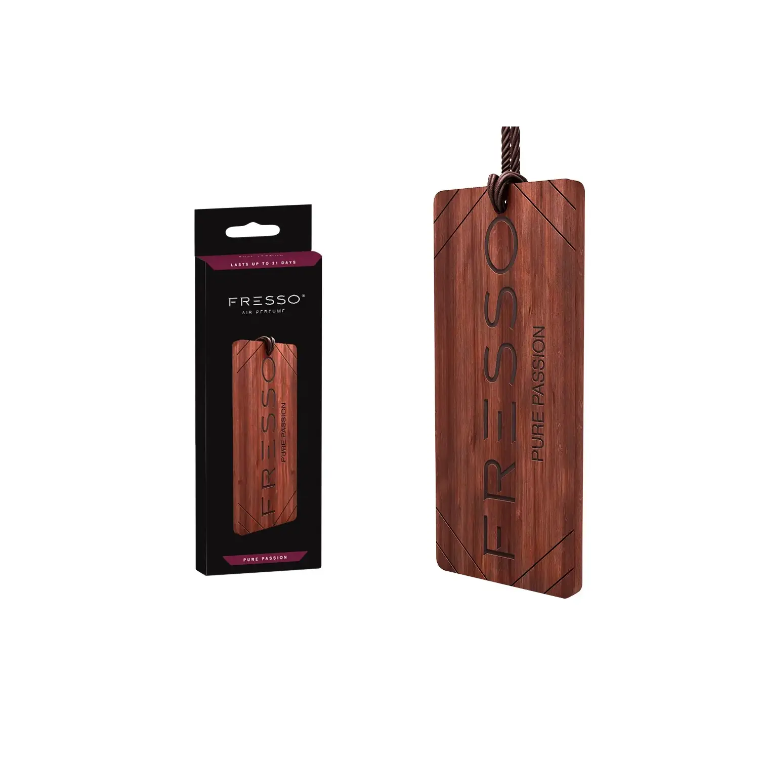 Elegancka, drewniana zawieszka zapachowa wzbogacona w brązowy, pleciony sznurek to wyszukany dodatek, który będzie znakomicie pasował do każdego wnętrza samochodu. Zawieszka Fresso pozytywnie Cię zaskoczy, gdyż ma unikalną formę, a jej zapach jest trwały i genialnie skomponowany.