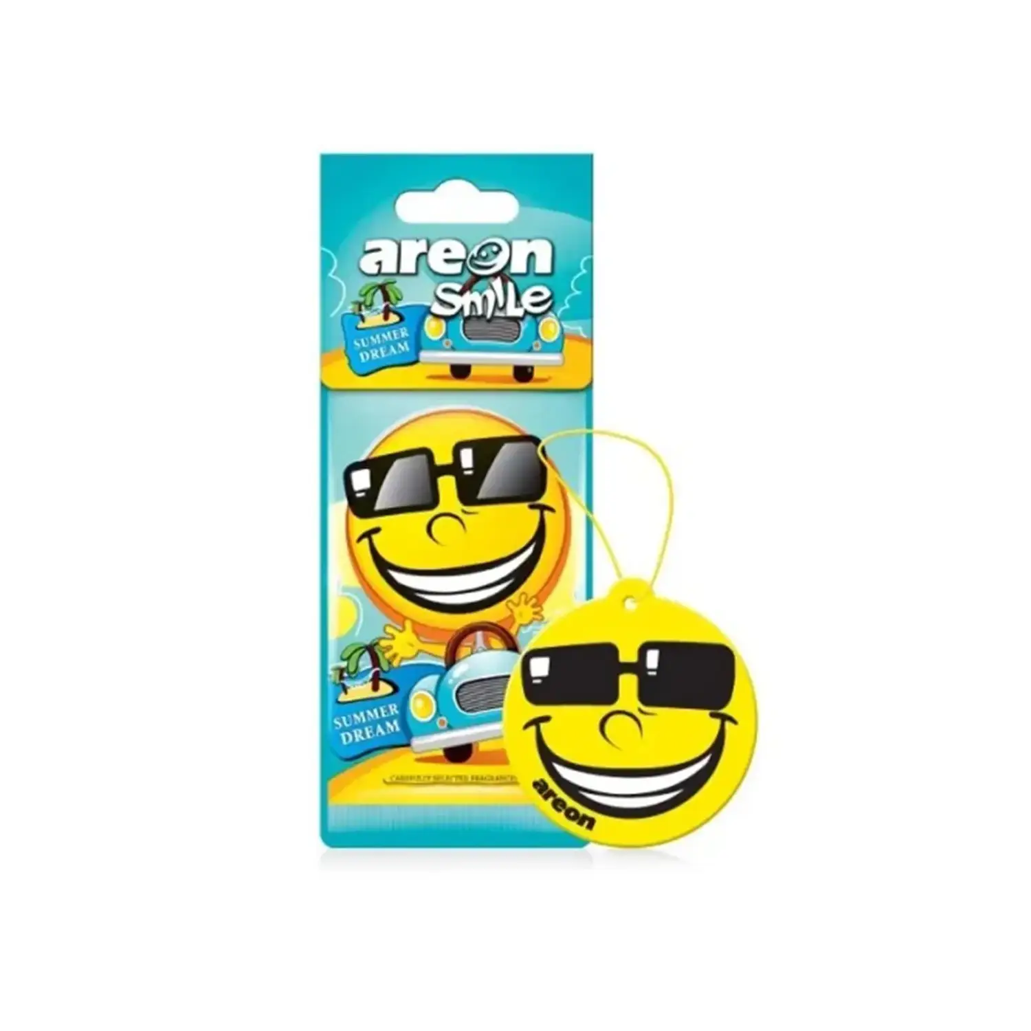 Areon Dry Smile to seria zawieszek samochodowych,  która jest odpowiedzią na spontaniczny styl życia młodych, energicznych ludzi i język ich komunikacji jakim są popularne emotikony. Areon jako pierwszy producent wprowadził odświeżacze samochodowe w atrakcyjnej formie emoji, którą do dzisiaj powielają konkurencyjni producenci. Zawieszki Areon Dry Smile zwane przez nas pieszczotliwie buźkami mają wyraziste żółte barwy, które są nośnikiem pozytywnej słonecznej energii. Zawieszki Dry Smile występują w 6 popularnych i świeżych zapachach, a wygodna gumka pozwala na łatwe zainstalowanie ich w samochodzie. Wprowadź pozytywny nastrój do swojego samochodu i wybierz się w podróż z uśmiechem Areon.