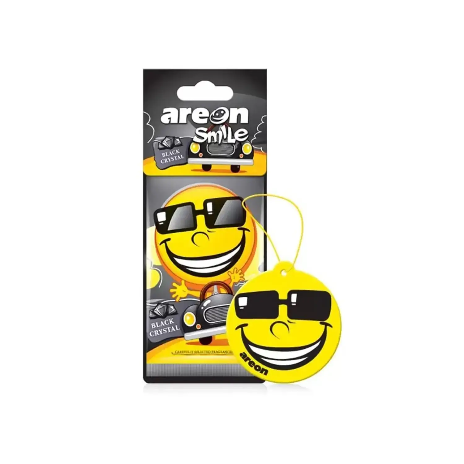 Areon Dry Smile to seria zawieszek samochodowych, która jest odpowiedzią na spontaniczny styl życia młodych, energicznych ludzi i język ich komunikacji jakim są popularne emotikony. Areon jako pierwszy producent wprowadził odświeżacze samochodowe w atrakcyjnej formie emoji, którą do dzisiaj powielają konkurencyjni producenci. Zawieszki Areon Dry Smile zwane przez nas pieszczotliwie buźkami mają wyraziste żółte barwy, które są nośnikiem pozytywnej słonecznej energii. Zawieszki Dry Smile występują w 6 popularnych i świeżych zapachach, a wygodna gumka pozwala na łatwe zainstalowanie ich w samochodzie. Wprowadź pozytywny nastrój do swojego samochodu i wybierz się w podróż z uśmiechem Areon.